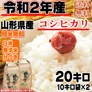 【送料無料】令和元年度産 山形県産 お米コシヒカリ 玄米 20kg(10kg袋×2)【白米・無洗米・分づき】